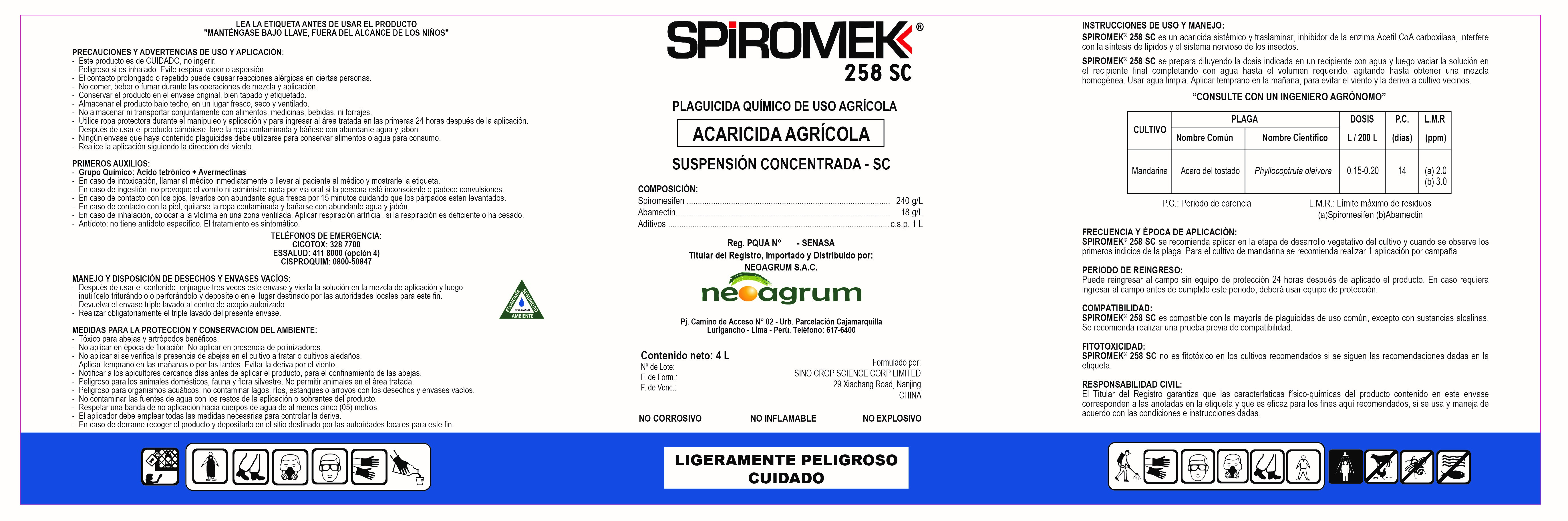 Etiquetas y documentos SPIROMECTIN DUO 240 SC